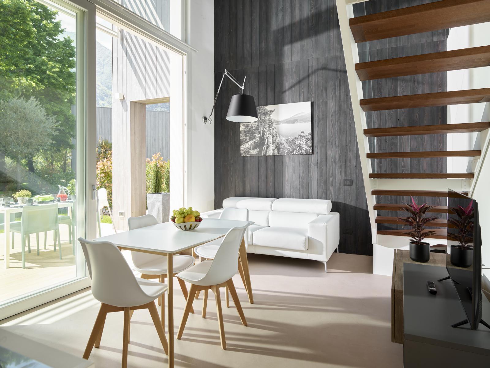 - Cucina attrezzata con lavastoviglie, forno, frigo e freezer, induzione, microonde, pentole e stoviglie